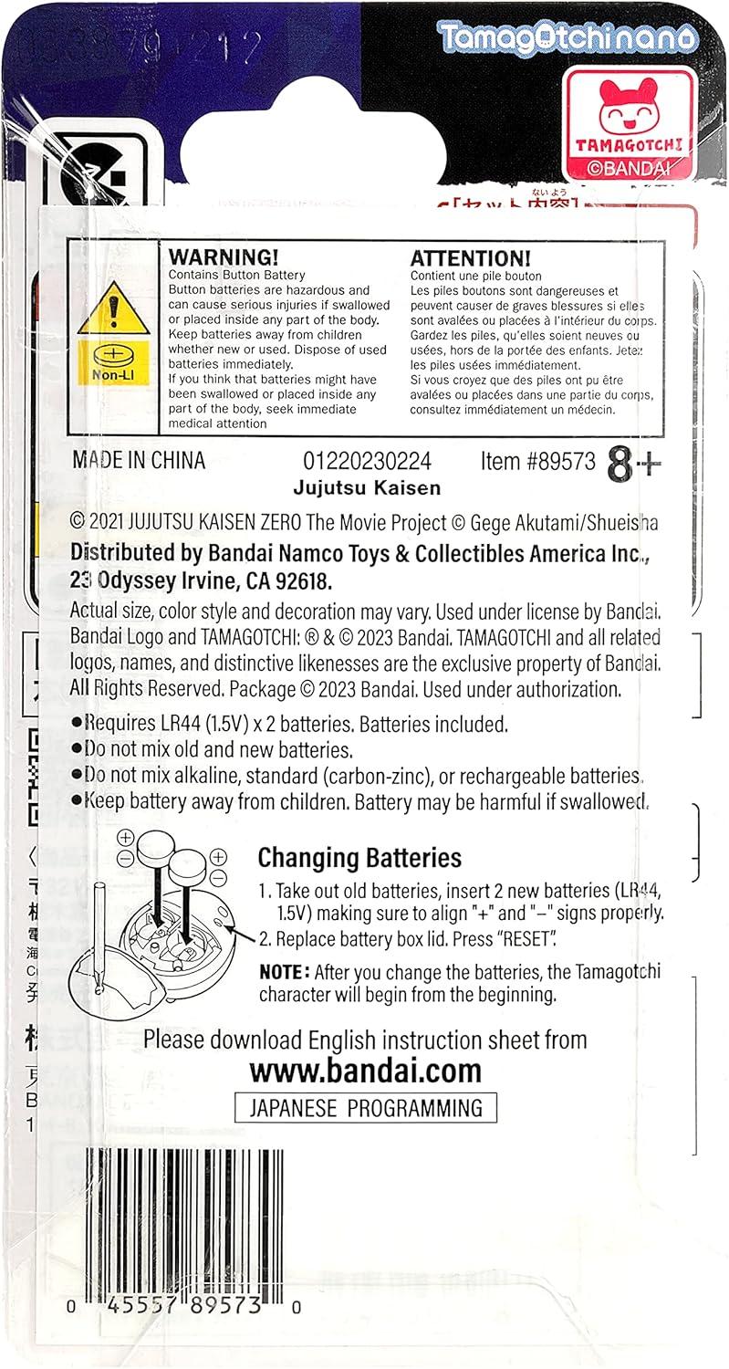 Comes with 1 Jujutsu Kaisen Tamagotchi nano device with a chain so you can take it with you everywhere!​ Battery (2xLR44) included, age 8+