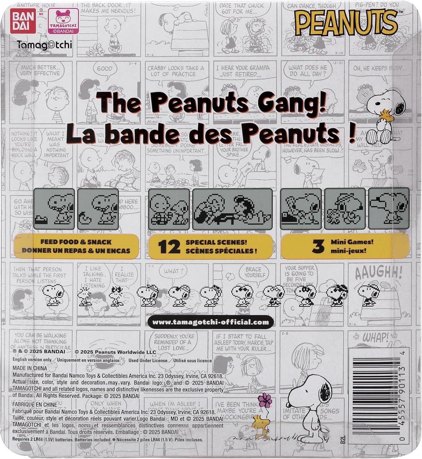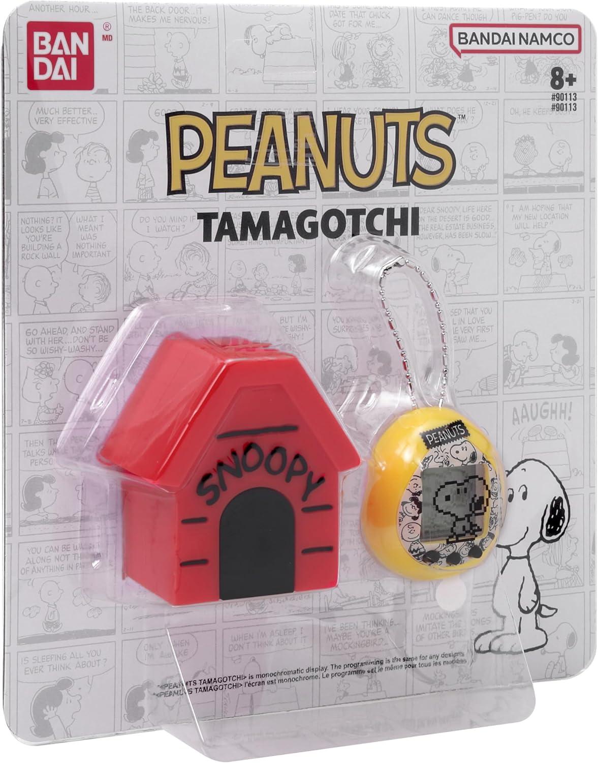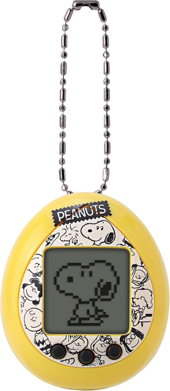 Tamagotchi and Peanuts join forces for the ultimate adventure featuring Snoopy! Users can feed, play with, and care for Snoopy in a pocket-sized digital pet experience. Depending on how well you care for Snoopy, you may see his outfit change or even get a surprise visit from Woodstock or his fellow bird Harriet! The device includes three mini-games: WRITE THE GREAT AMERICAN NOVEL, BEAGLE SCOUTS, and SNOOPY'S SUPPERTIME. Keep the Peanuts gang happy by feeding Snoopy dog food or a donut snack, while Woodstock and Harriet are nourished with seeds and water. Don't forget to look out for 12 special comic strip scenes that appear every hour, where you might even catch a glimpse of other beloved Peanuts characters like Lucy, Linus, or Pigpen! The Peanuts Tamagotchi Nano also comes with Snoopy’s red doghouse silicone case, offering a stylish and protective way to carry your device. If you don’t take good care of your virtual pets, expect a farewell letter accompanied by cute paw prints.