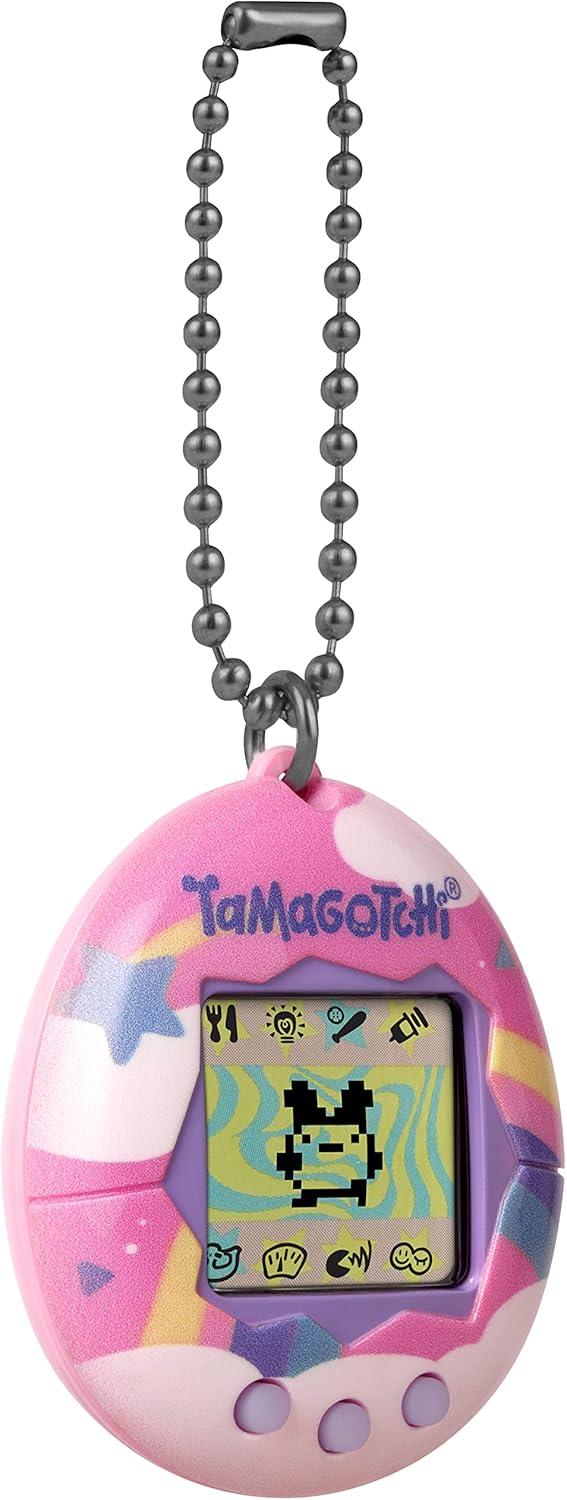 The Original digital pet you love with a Angel Cake shell design and three-dimensional wings! Comes with the Angel programming, the device will begin with the Obaketchi Angel (a ghost character) and depending on how you nurture your character will determine which of the 5 adult Tamagotchi Angel characters you will get. You feed it, clean up after it, and even praise it. Plus, you can play the Shooting Star mini game! Includes the CR2032 battery and attaches to your bag so it goes everywhere! Ages 8+.