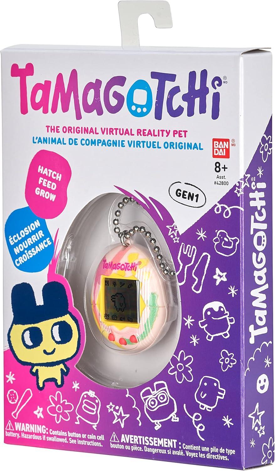 The Original digital pet you loved in 1997 is back with a pale pink shell with art design! With original programming, you feed it, clean up after it, take care of it and even discipline it if it's bothering you when it doesn't need you! Plus, you can play the Character game! How you take care of your Tamagotchi and how you do in the game, determines which Adult Tamagotchi you'll get! Includes the CR2032 battery and attaches to your bag so it goes everywhere! Ages 8+