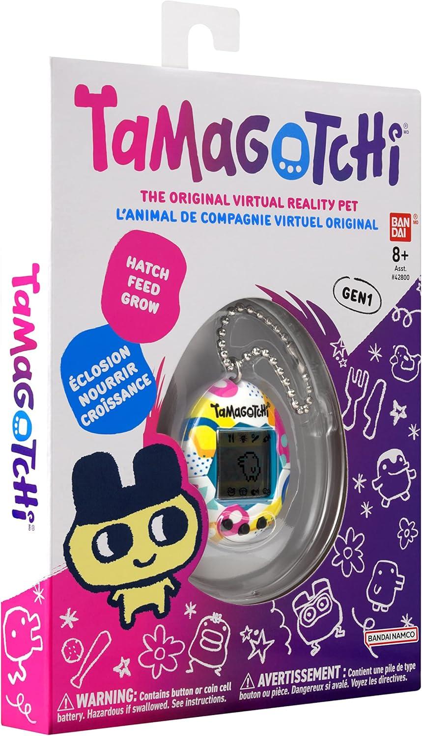 The Original digital pet you love is back with the original pink with yellow shell launched back in 1997! With original programming, you feed it, clean up after it, take care of it and even discipline it if it's bothering you when it doesn't need you! Plus, you can play the Character game! How you take care of your Tamagotchi and how you do in the game, decides which Adult Tamagotchi you'll get! Includes the CR2032 battery and attaches to your bag so it goes everywhere! Ages 8+