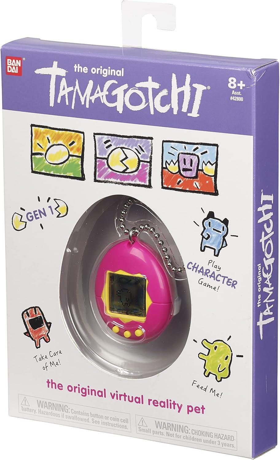 The Original digital pet you love is back with the original pink with yellow shell launched back in 1997! With original programming, you feed it, clean up after it, take care of it and even discipline it if it's bothering you when it doesn't need you! Plus, you can play the Character game! How you take care of your Tamagotchi and how you do in the game, decides which Adult Tamagotchi you'll get! Includes the CR2032 battery and attaches to your bag so it goes everywhere! Ages 8+