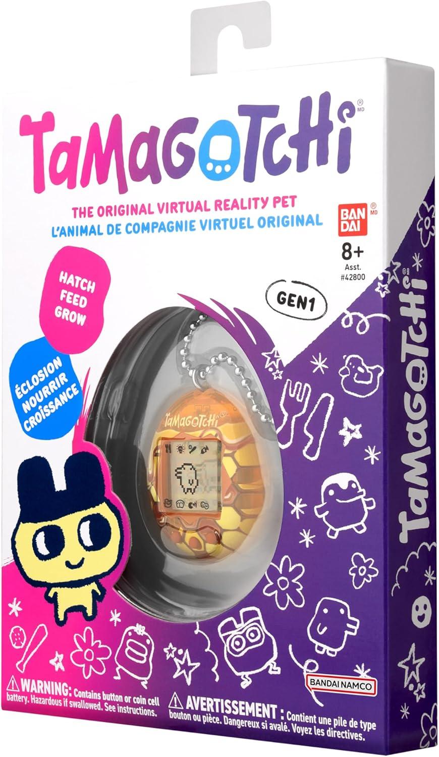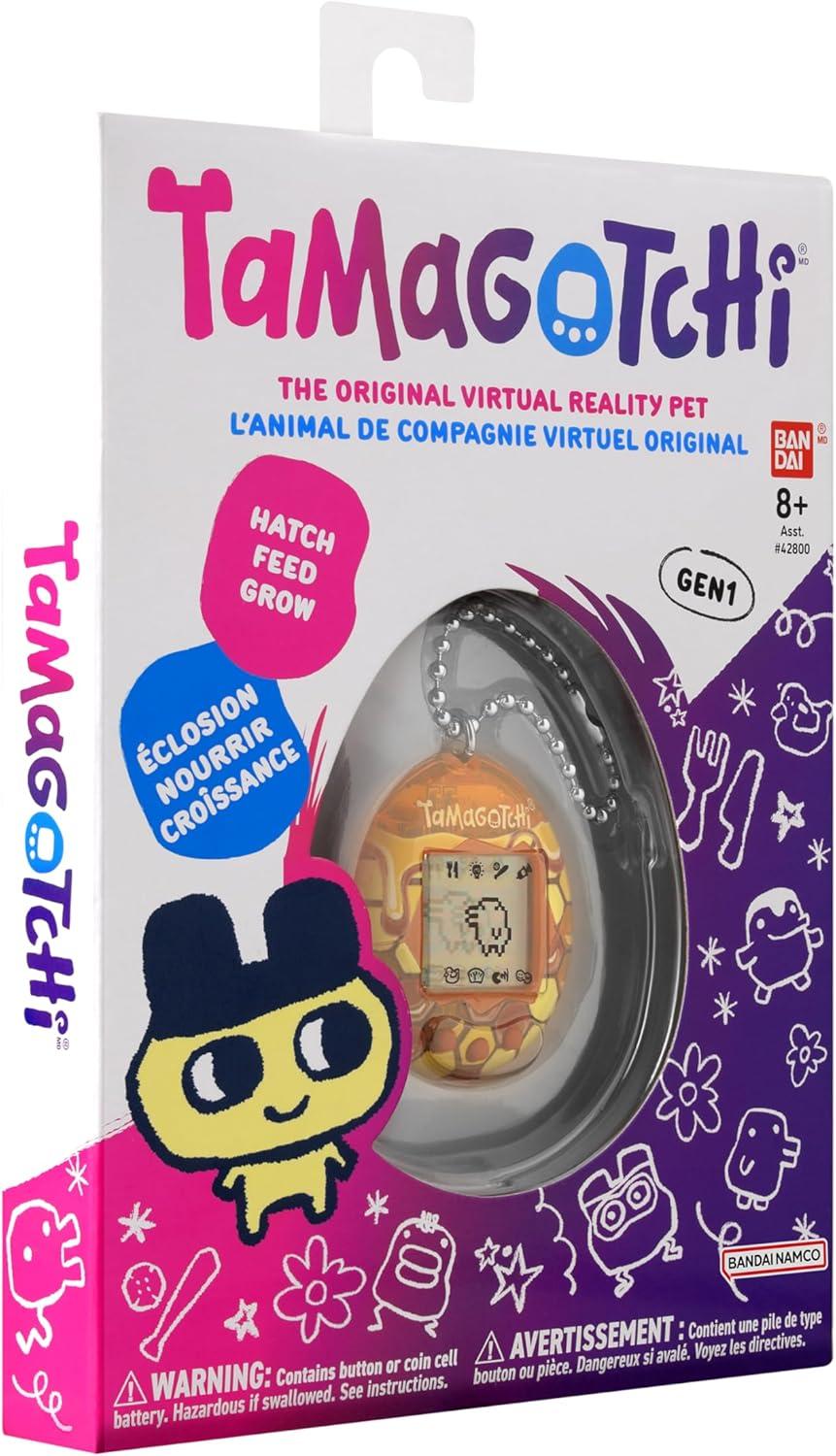 The Original digital pet you love is back with the original pink with yellow shell launched back in 1997! With original programming, you feed it, clean up after it, take care of it and even discipline it if it's bothering you when it doesn't need you! Plus, you can play the Character game! How you take care of your Tamagotchi and how you do in the game, decides which Adult Tamagotchi you'll get! Includes the CR2032 battery and attaches to your bag so it goes everywhere! Ages 8+