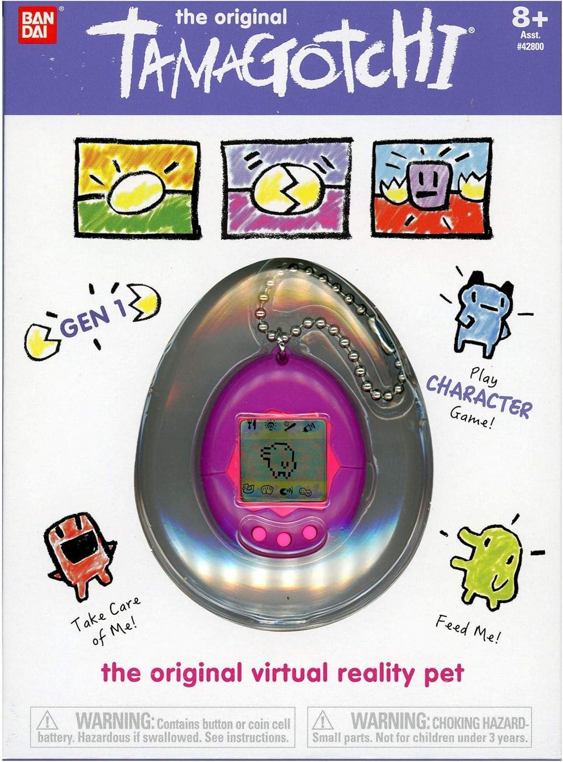 The Original digital pet you love is back with the original pink with yellow shell launched back in 1997! With original programming, you feed it, clean up after it, take care of it and even discipline it if it's bothering you when it doesn't need you! Plus, you can play the Character game! How you take care of your Tamagotchi and how you do in the game, decides which Adult Tamagotchi you'll get! Includes the CR2032 battery and attaches to your bag so it goes everywhere! Ages 8+