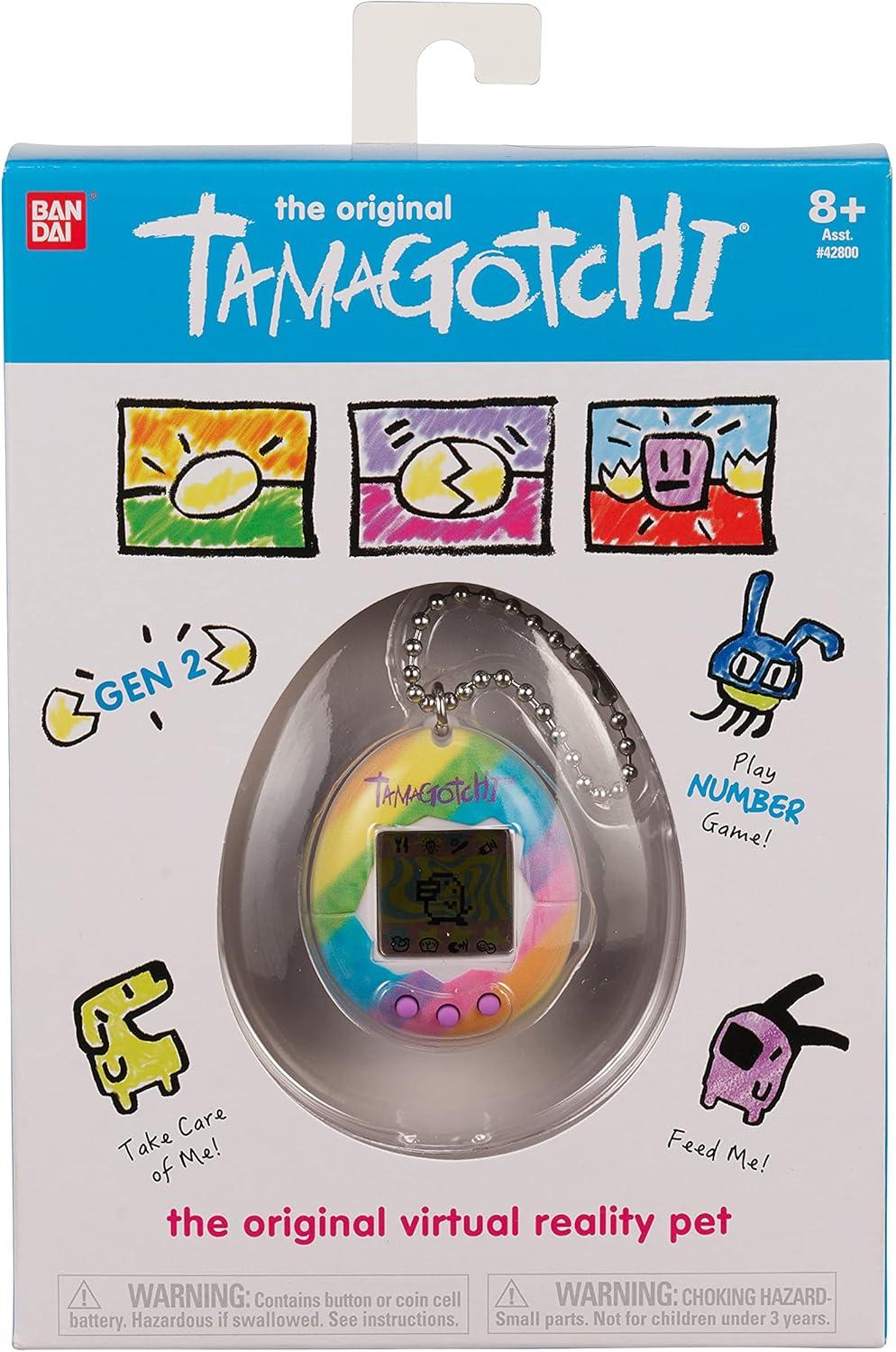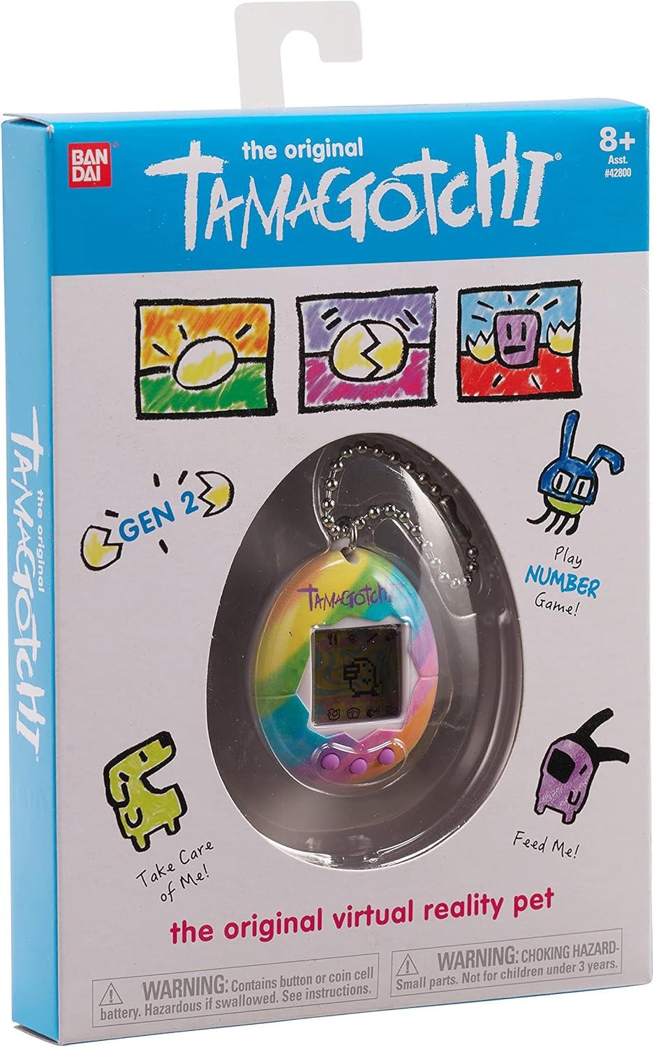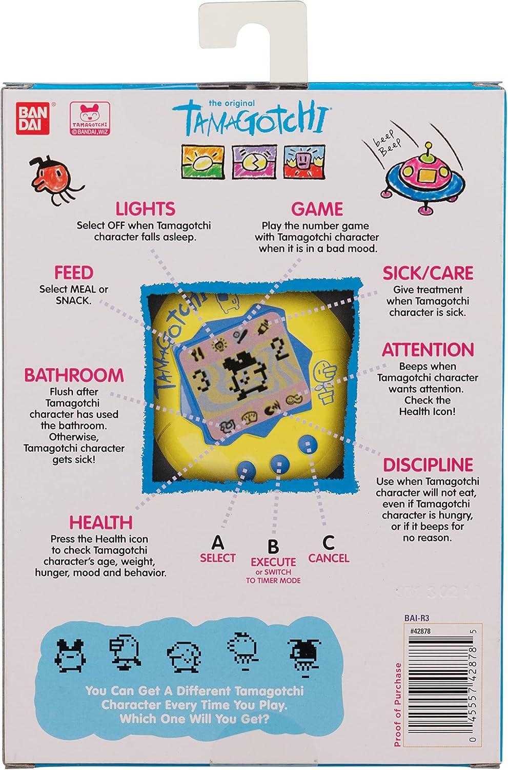 The Original digital pet you love is back with the original pink with yellow shell launched back in 1997! With original programming, you feed it, clean up after it, take care of it and even discipline it if it's bothering you when it doesn't need you! Plus, you can play the Character game! How you take care of your Tamagotchi and how you do in the game, decides which Adult Tamagotchi you'll get! Includes the CR2032 battery and attaches to your bag so it goes everywhere! Ages 8+