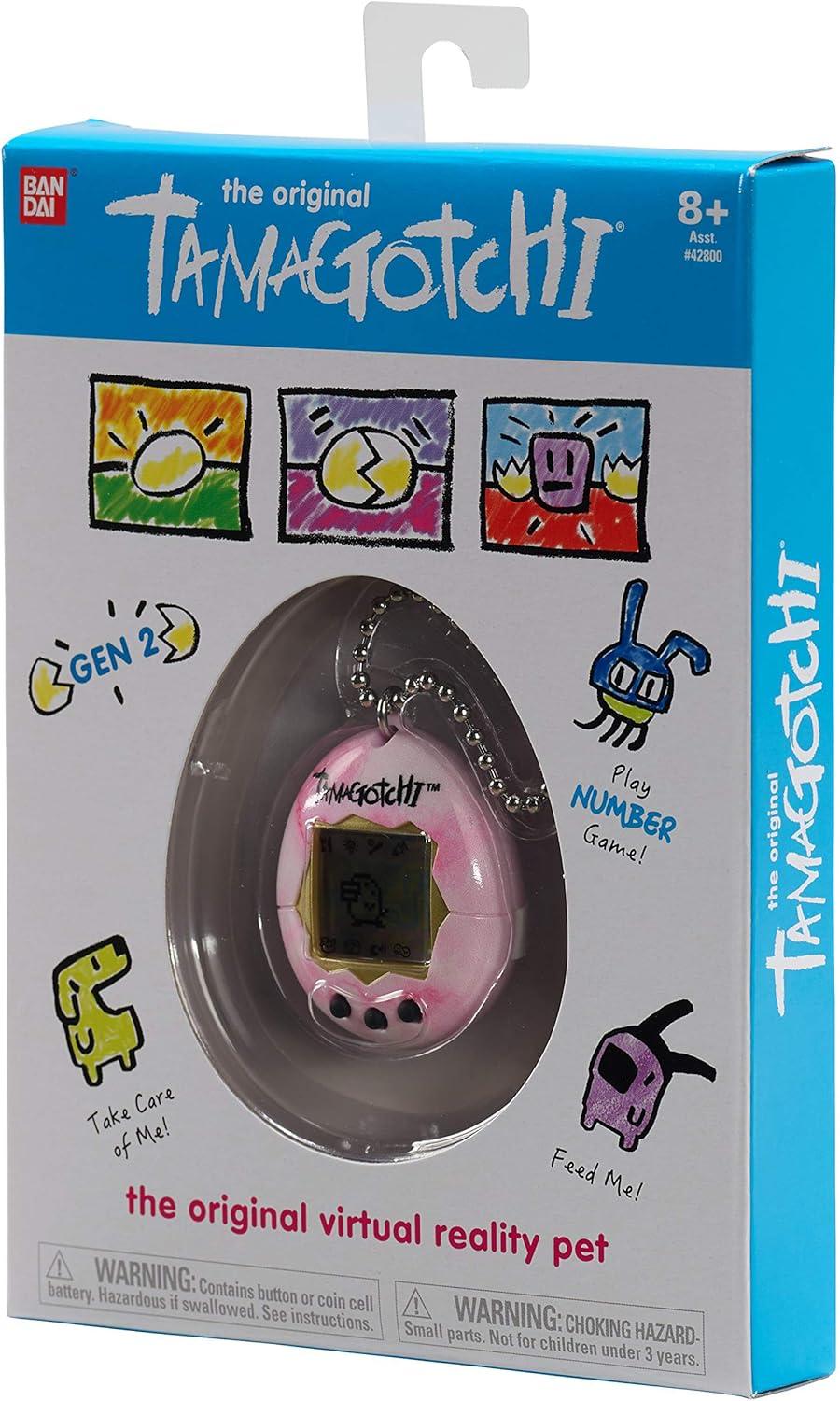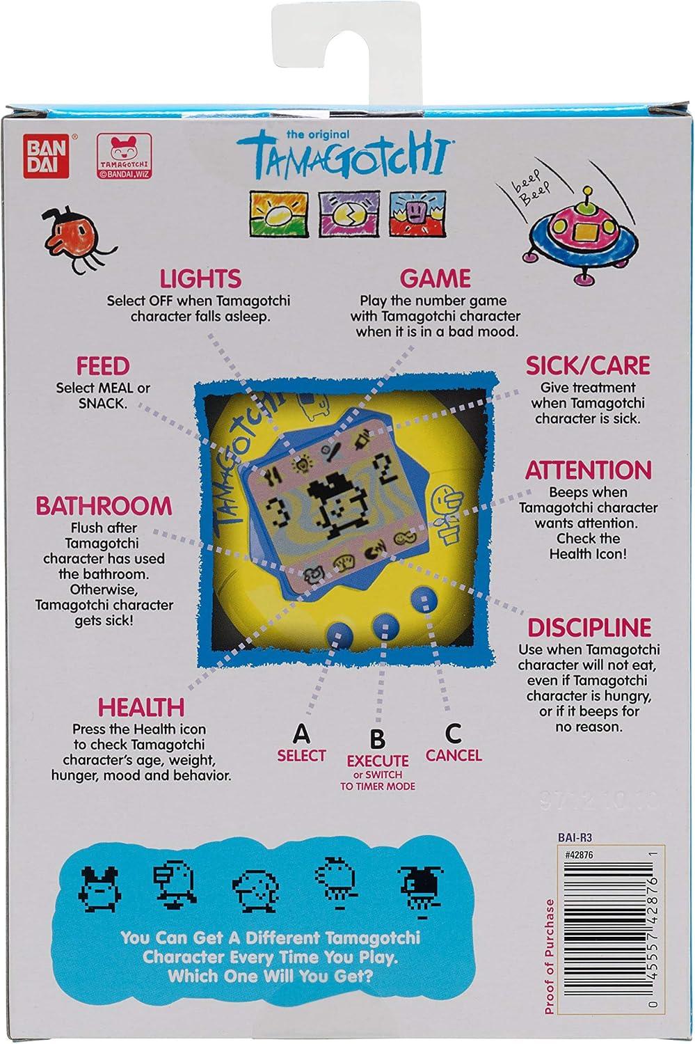 The Original digital pet you love is back with the original pink with yellow shell launched back in 1997! With original programming, you feed it, clean up after it, take care of it and even discipline it if it's bothering you when it doesn't need you! Plus, you can play the Character game! How you take care of your Tamagotchi and how you do in the game, decides which Adult Tamagotchi you'll get! Includes the CR2032 battery and attaches to your bag so it goes everywhere! Ages 8+