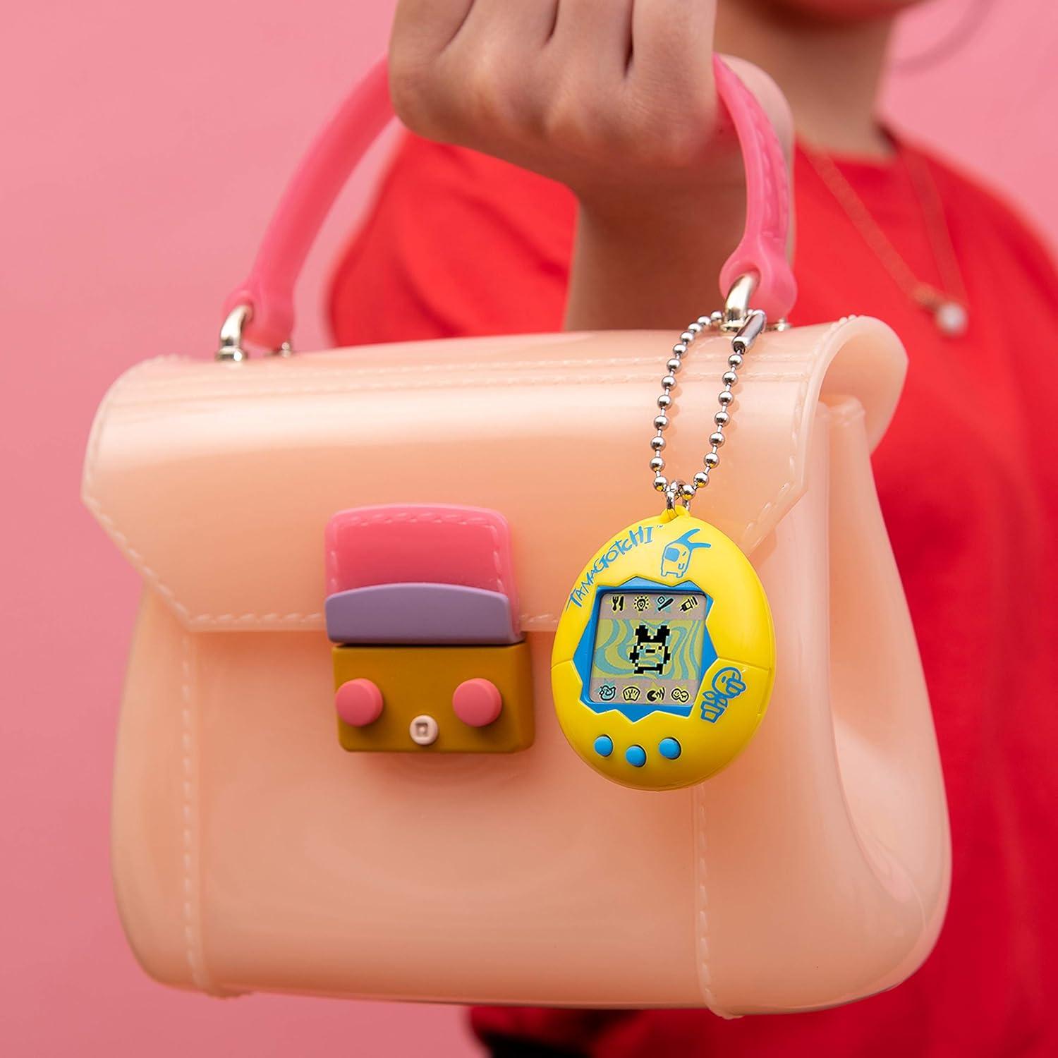 The Original digital pet you love is back with the original pink with yellow shell launched back in 1997! With original programming, you feed it, clean up after it, take care of it and even discipline it if it's bothering you when it doesn't need you! Plus, you can play the Character game! How you take care of your Tamagotchi and how you do in the game, decides which Adult Tamagotchi you'll get! Includes the CR2032 battery and attaches to your bag so it goes everywhere! Ages 8+