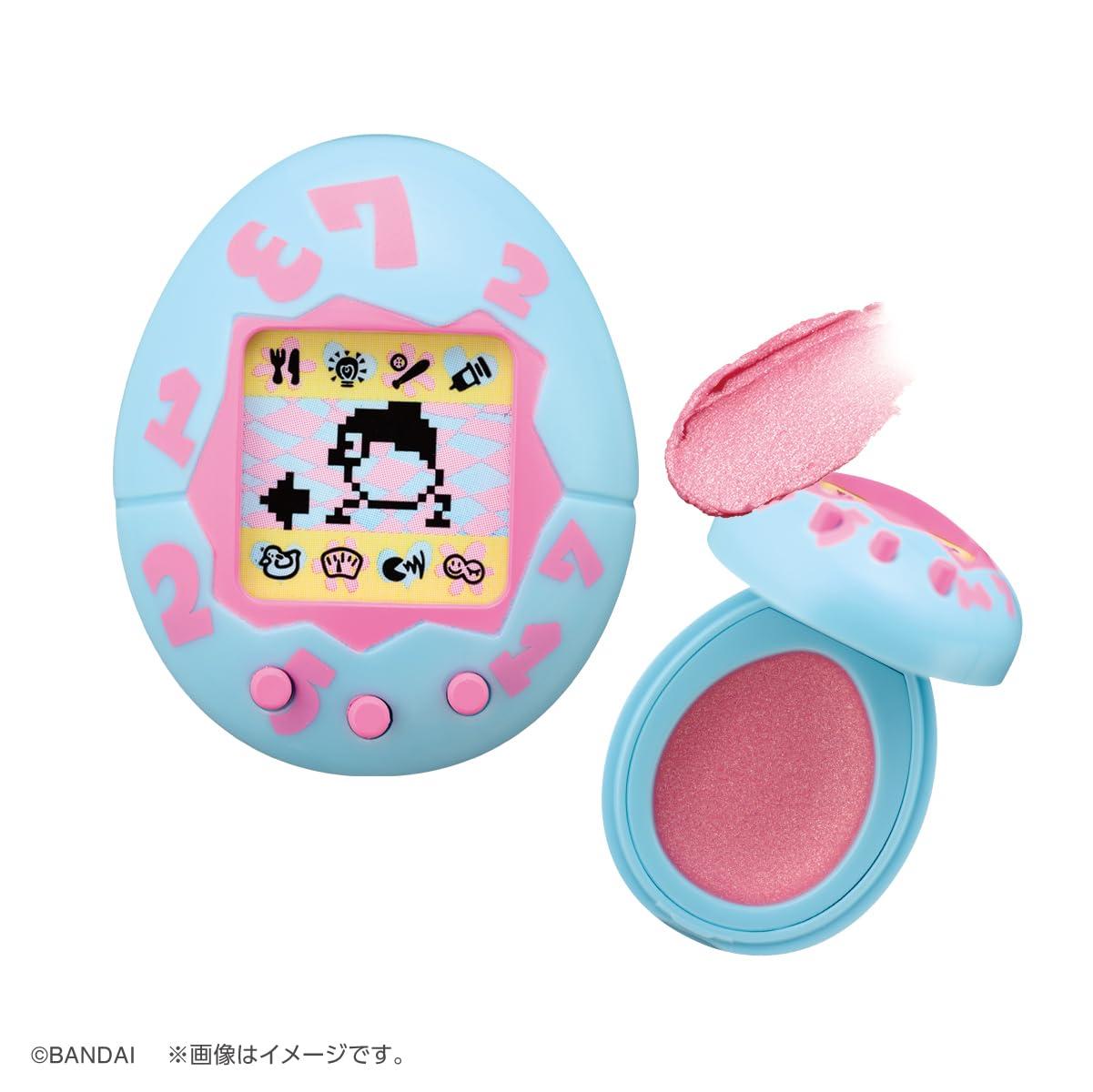 This compact cosmetic comes in a pink angel Tamagotchi case that makes for the cutest accessory. This color comes in pearl pink – a shiny, pearlescent pink that can be used on your face or eyes for shimmer! Collect all 6.